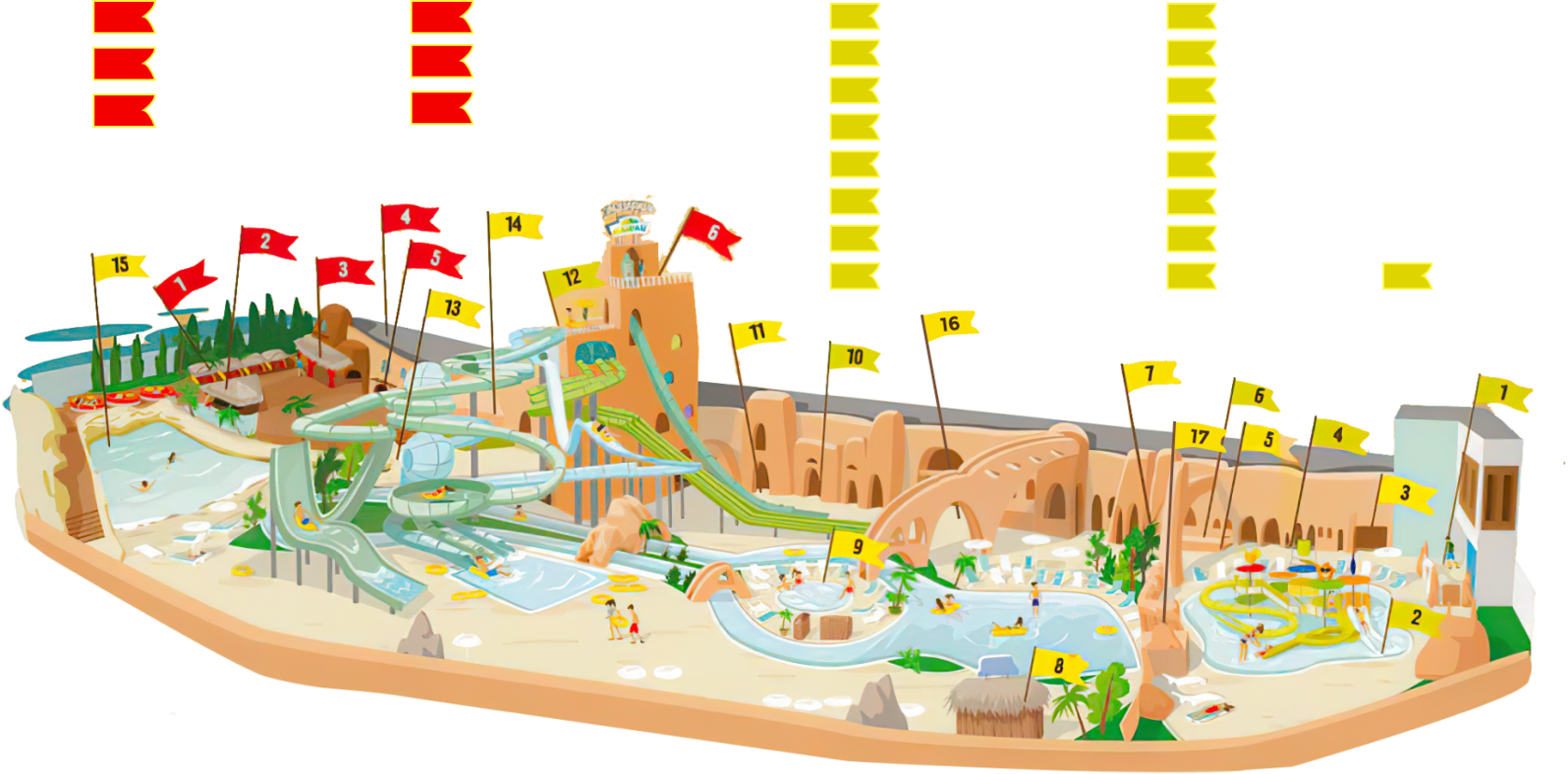 For visitors who want to retire with their family or just take a break from the noise in our water park, the AQUA-VIP zone is provided! It is located far from attractions and common recreation areas and has several advantages: